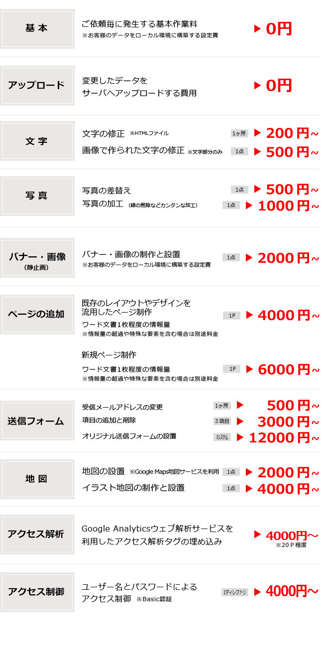 ちょっとしたホームページの修正・更新など、お気軽にご利用ください。
